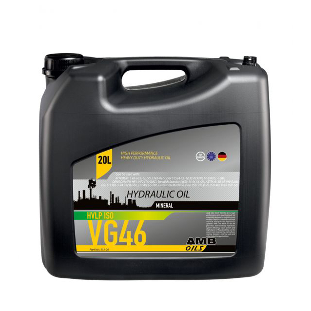 AMB Oils HVLP ISO-VG 46 is high quality multi-grade hydraulic oil type HVLP based on special selected high quality base oil. AMB Oils HVLP ISO-VG 46 offers excellent due to the extreme resilience, viscosity-temperature behaviour and good wear protection predestined strong for use in all claimed mobile and industrial hydraulic systems. Prevent good air and water foaming and get in touch with oxidation inhibitors high resistance to aging. The behaviour against sealing materials is neutral.AMB Oils HVLP ISO-VG 46 is suitable for heavy loaded hydaulic machines of the industry, for earth moving machines and agricultural machines.