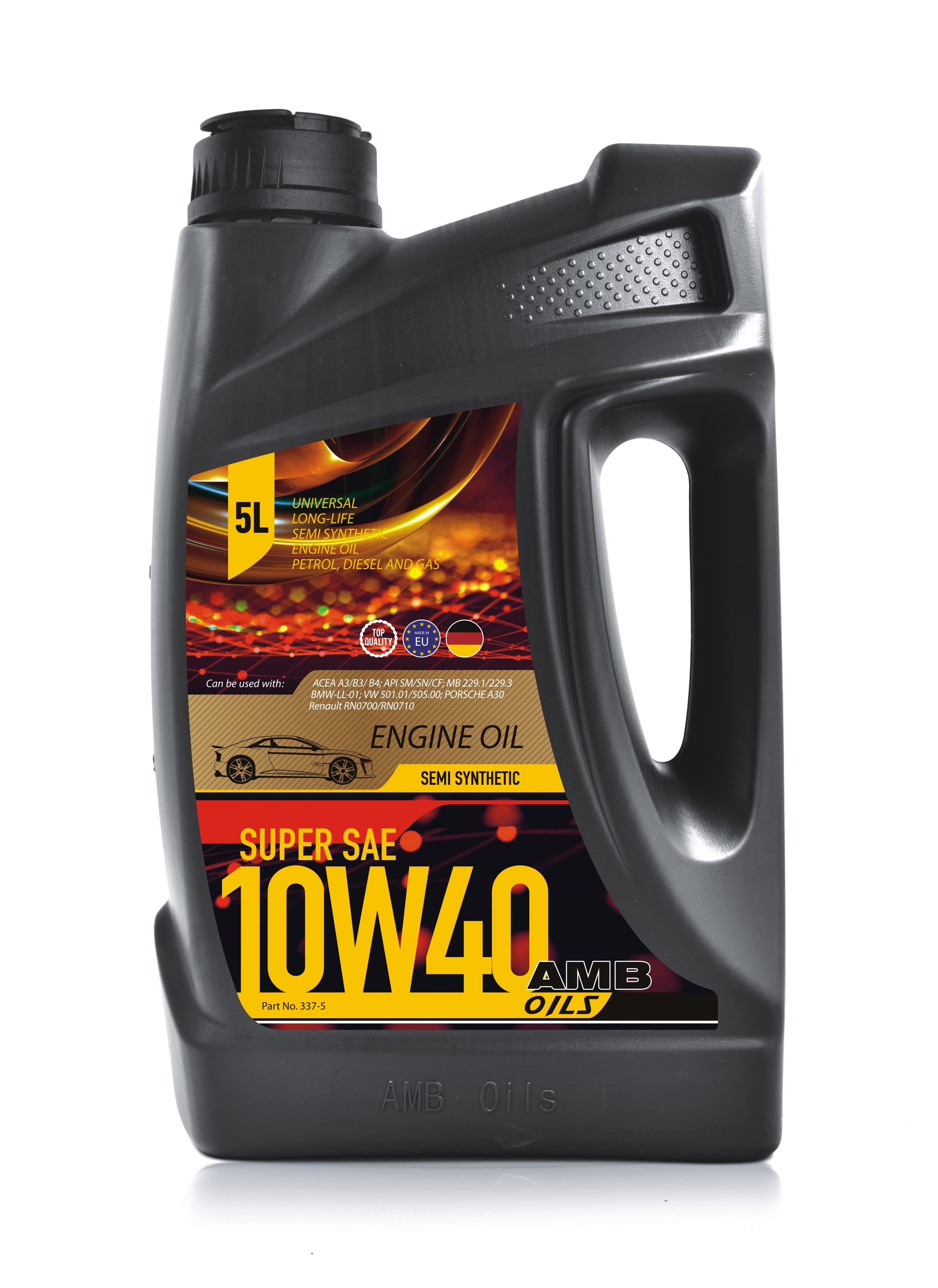 AMB Oils Super SAE 10w40 is most modern, high performance, semi-synthetic, low friction engine oil based on high quality synthetic lubricant components with latest techniques suitable for all petrol and diesel passenger cars with and without turbo charger.AMB Oils Super SAE 10w40 is characterized by excellent cold starting behavior, minimization of fuel consumption as well as wear and corrosion, high temperature resistance under extreme conditions is guaranteed. With AMB Oils Super SAE 10w40 was a reliable and heavy-duty engine oil developed.AMB Oils Super SAE 10w40 is suitable for the energy saving operation all the year of all modern cars with petrol and diesel engines. Suitable for cars of Japanese and Asian manufacturers.